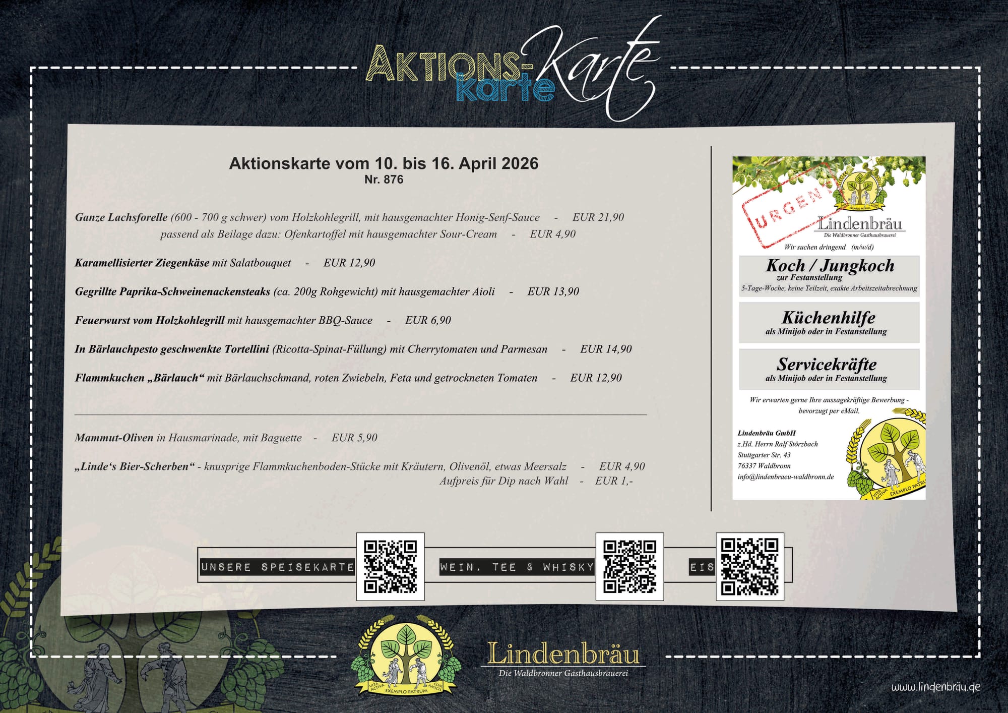 Unsere Wochenkarte vom 10. bis 16. April 2026 Küchenchef Benny Bozic und sein Team wünschen guten Appetit!