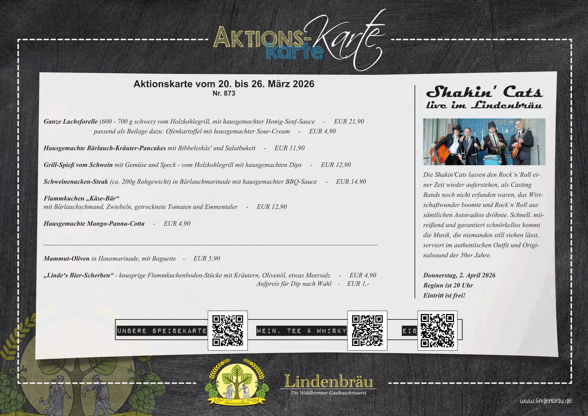 Unsere Wochenkarte vom 20. bis 26. März 2026 Küchenchef Benny Bozic und sein Team wünschen guten Appetit!