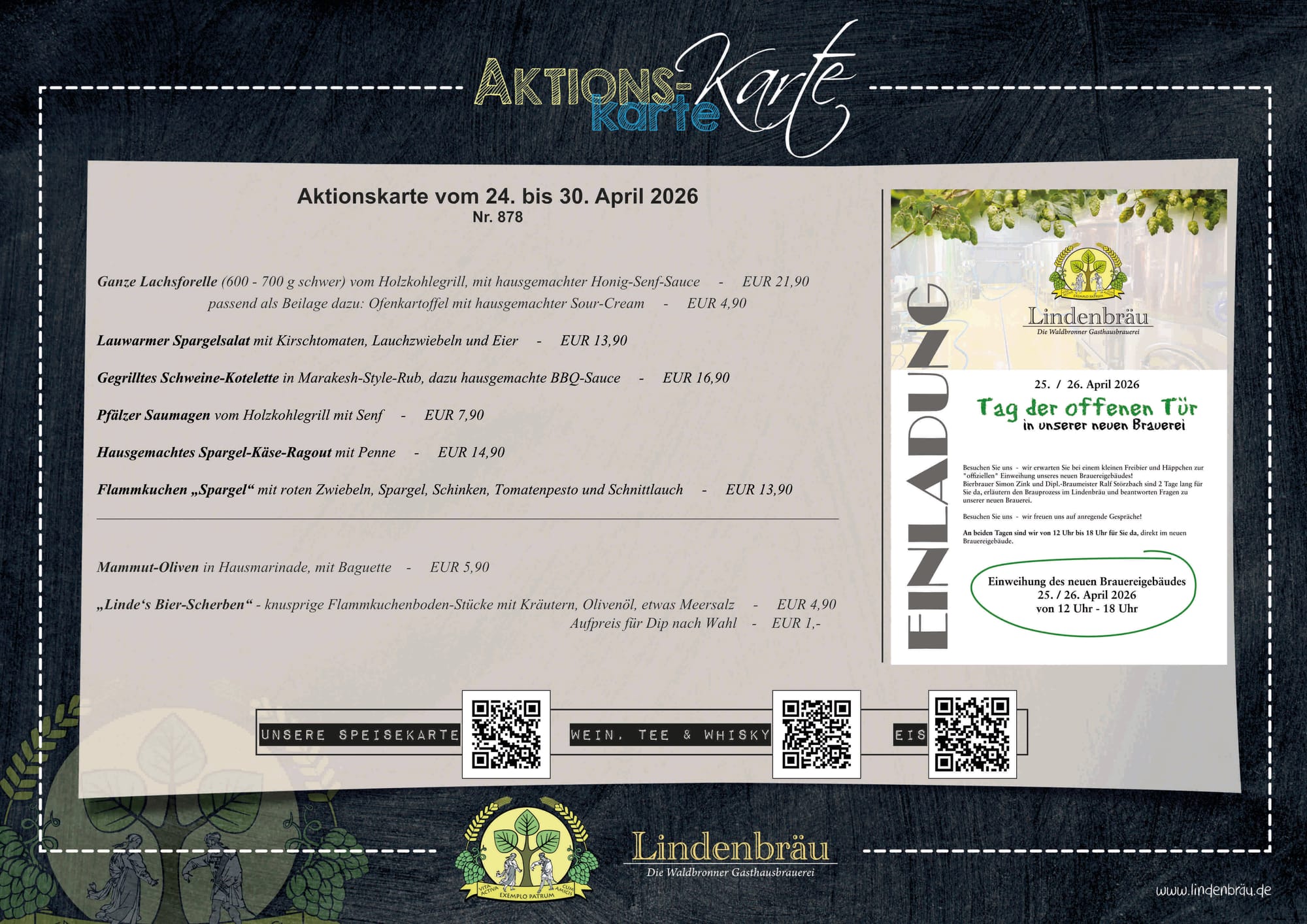 Unsere Wochenkarte vom 24. bis 30. April 2026 Küchenchef Benny Bozic und sein Team wünschen guten Appetit!