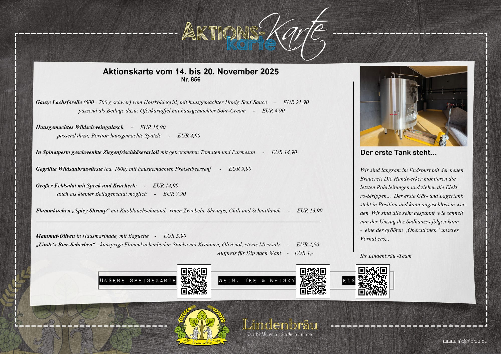 Unsere Wochenkarte vom 14. bis 20. November 2025 Küchenchef Benjamin Bozic und sein Team wünschen guten Appetit!